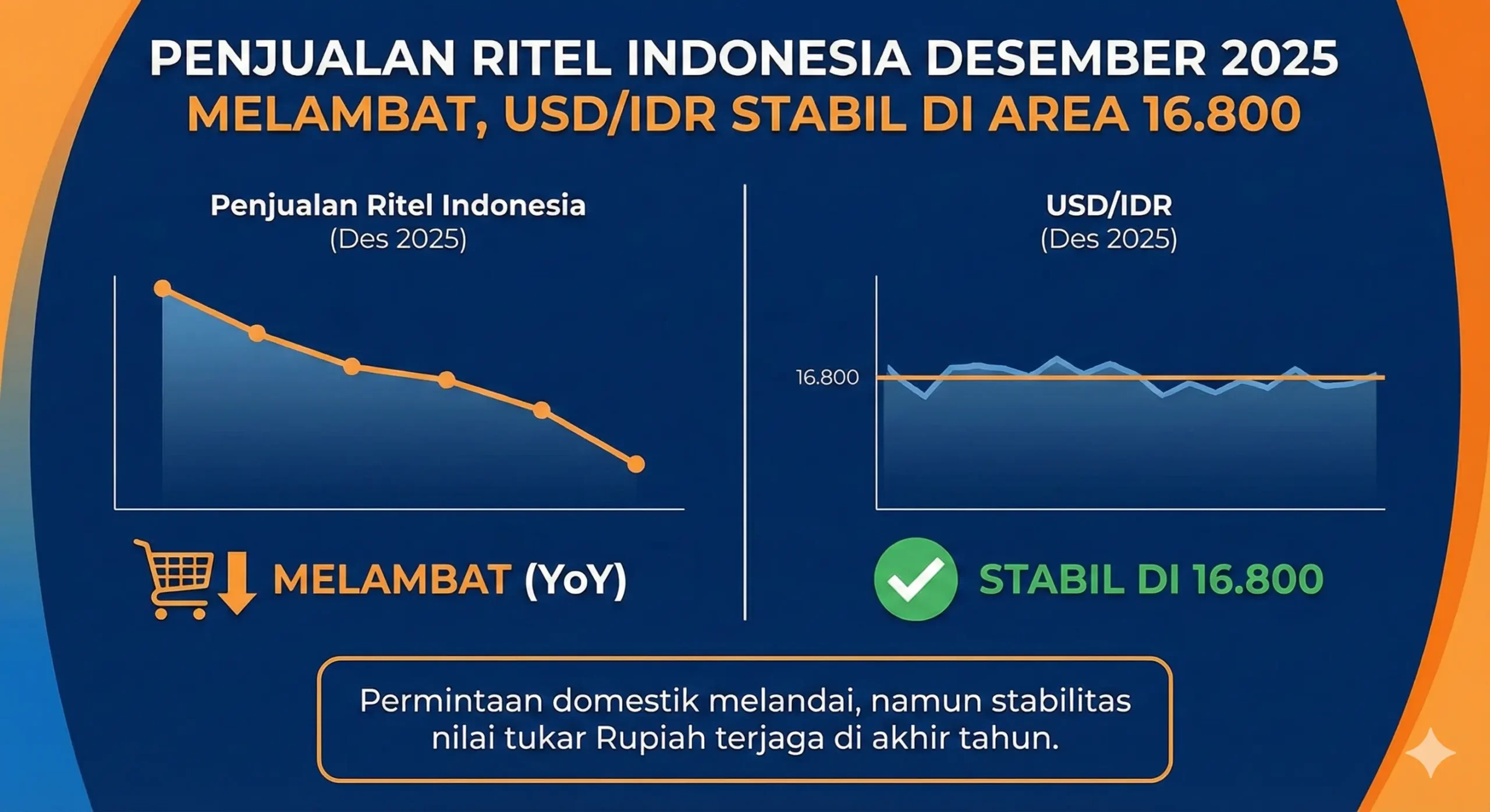 Penjualan Ritel Indonesia Desember 2025 Melambat, USD/IDR Stabil di Area 16.800